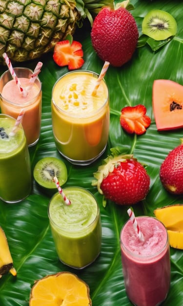 Range of delicious smoothies made with tropical fruits and herbs, crafted to cleanse, boost energy, and support the body’s natural healing process.
